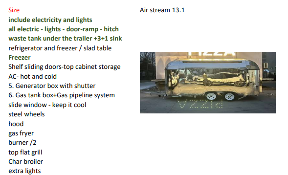 FOOD TRAILERS RANGE FROM 11K-29K FOR AIR STREAM – DEPEND ON EQUIPMENT INSIDE