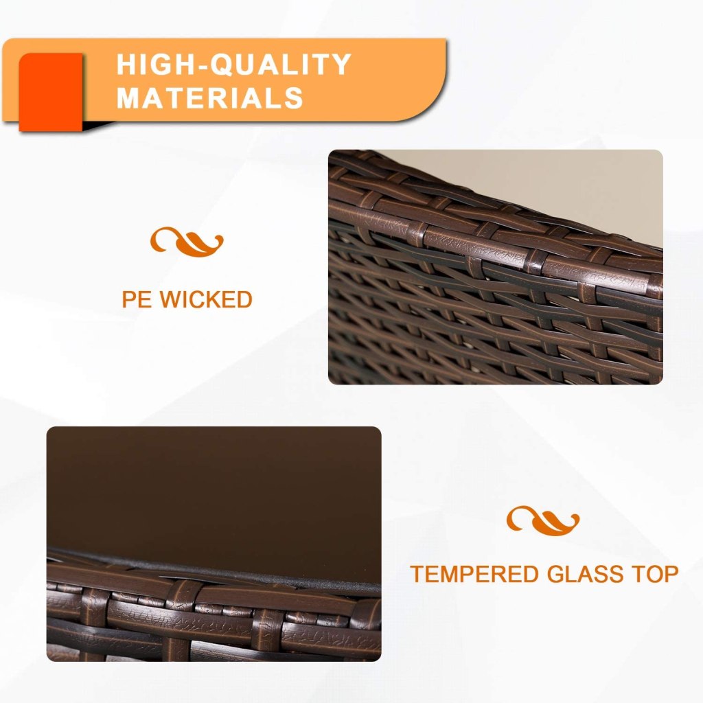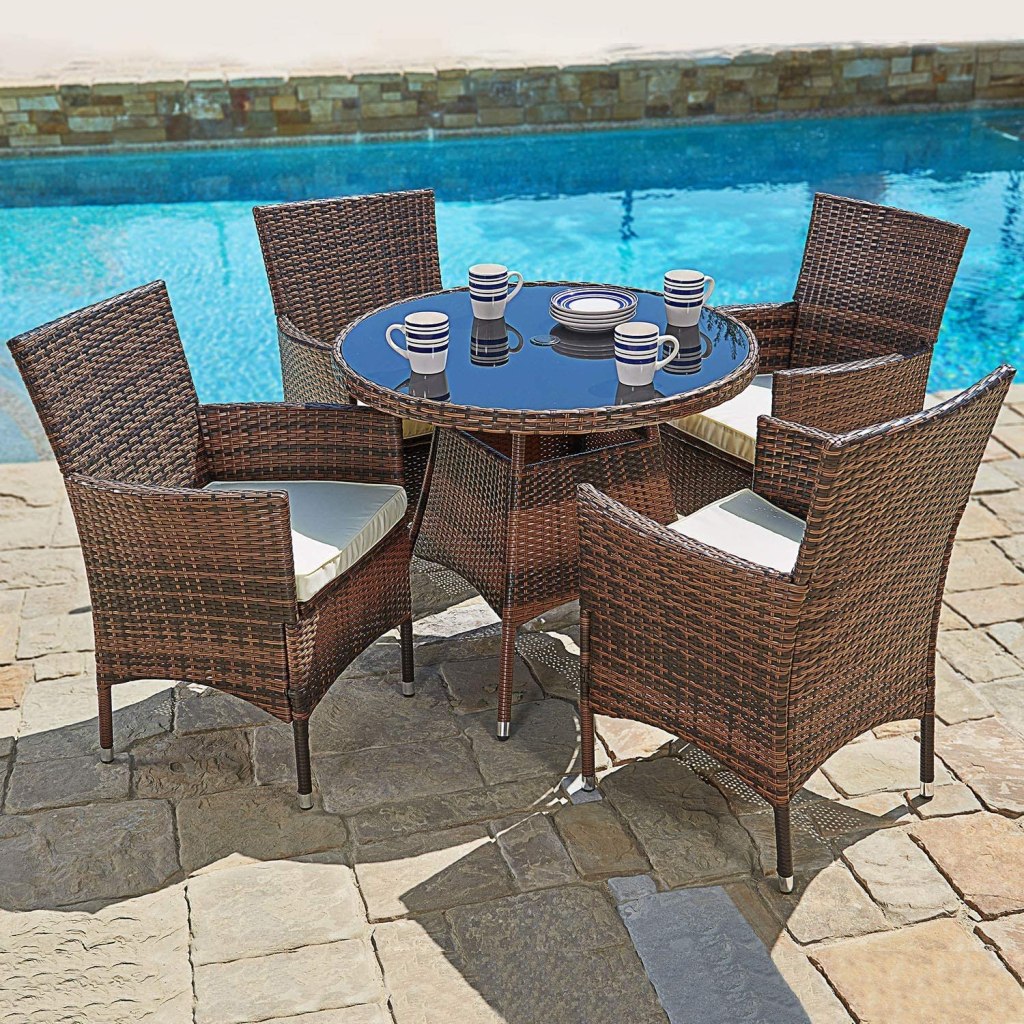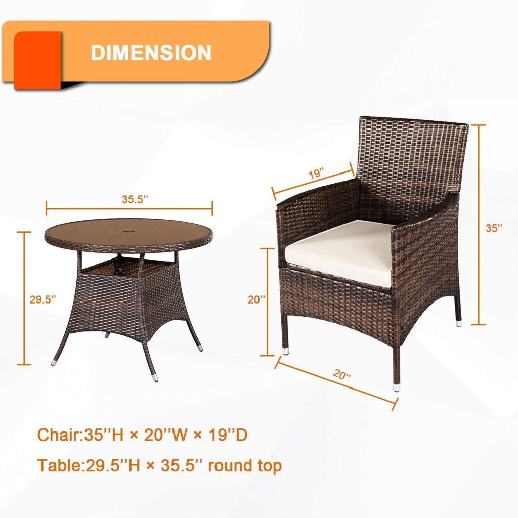 5-Piece Patio Furniture Outdoor Wicker Dining Table and 4 Chairs Set, Round Tempered Glass Top Table with Umbrella Hole, Brown